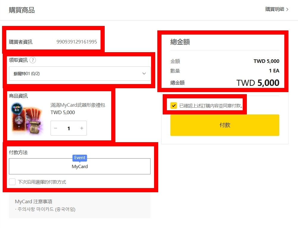 – 選擇欲領取商品的世界後,請勾選下方的必須同意內容。(不同意則無法購買。)