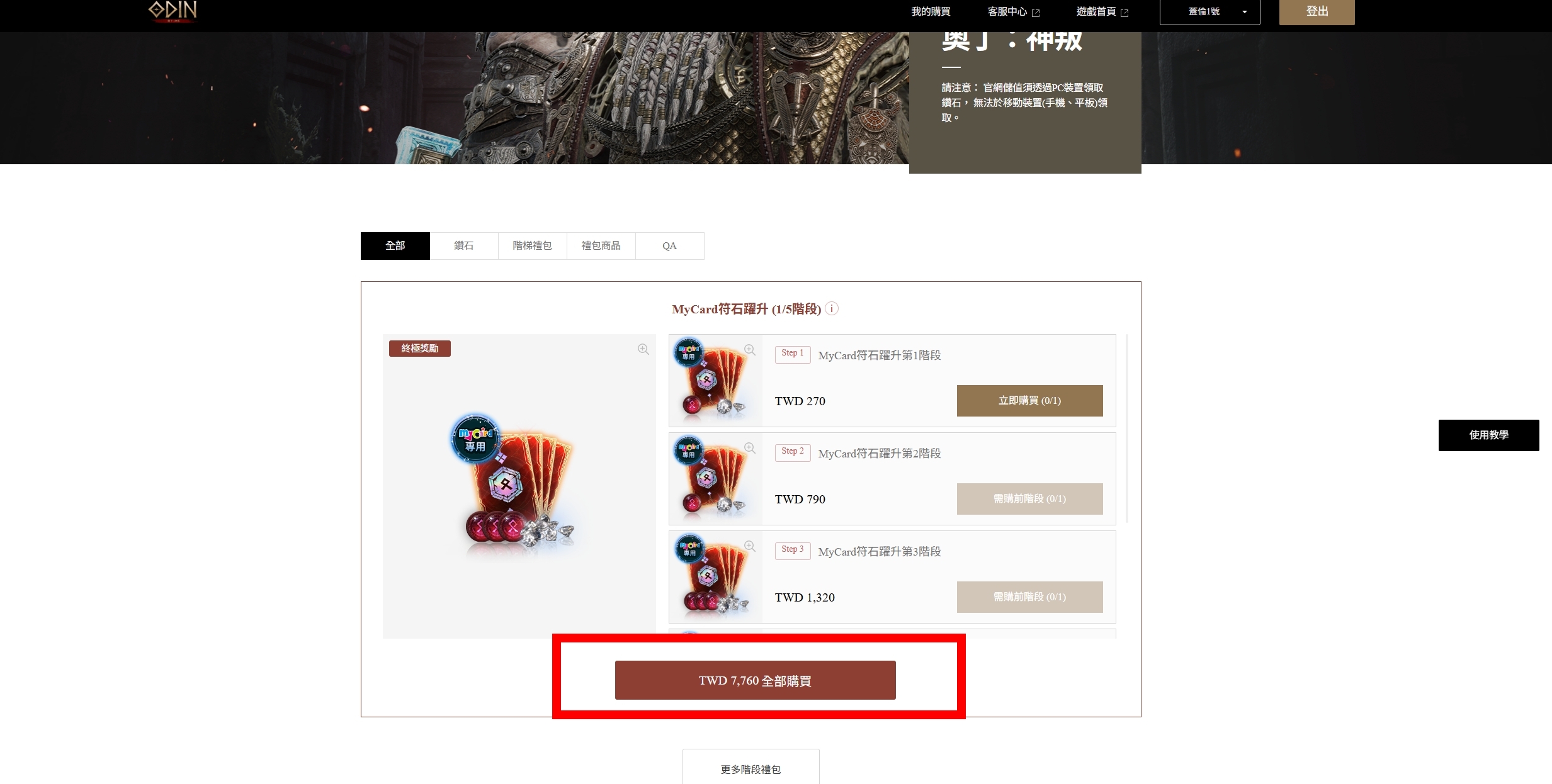 – 階段性禮包可點選下方[全部購買]選項進行一次性購買。